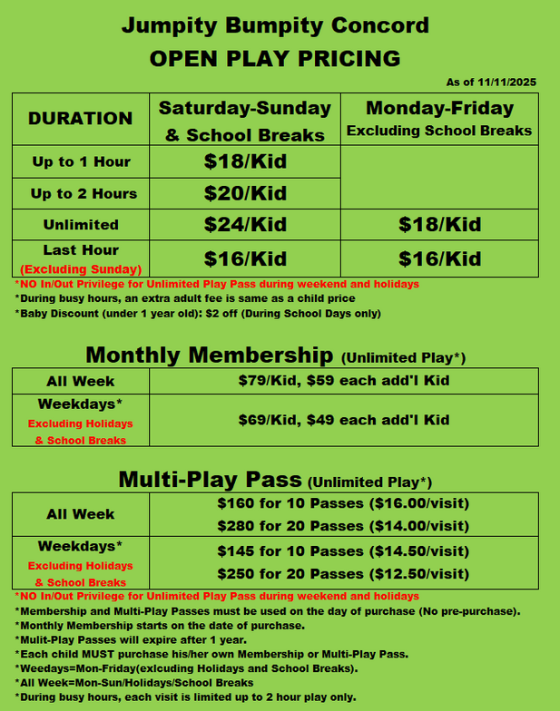 Jumpity Bumpity Open Play Prices